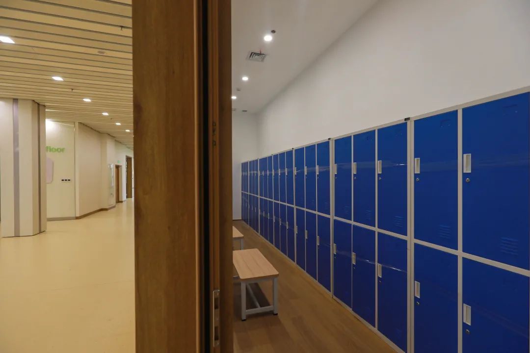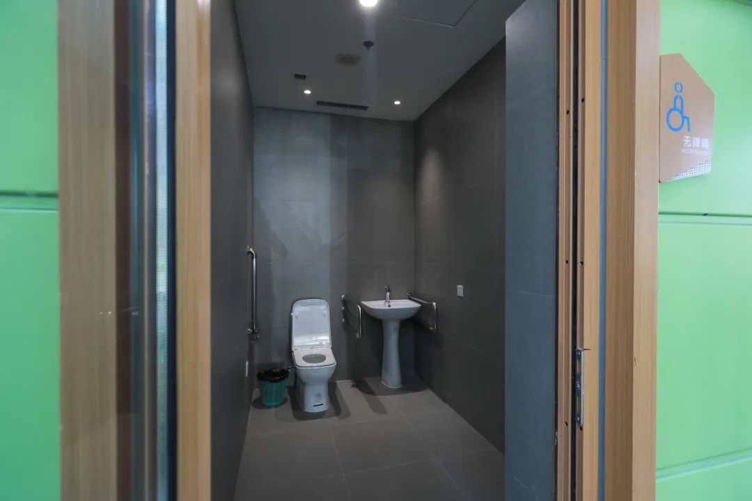 记者注意到,每个区域都配有独立电梯,男女洗手间和无障碍洗手间均设置了高低洗手台,以满足不同年龄段孩子的需求。中心还设有可容纳400多人的餐厅,地上、地下停车位约900个。