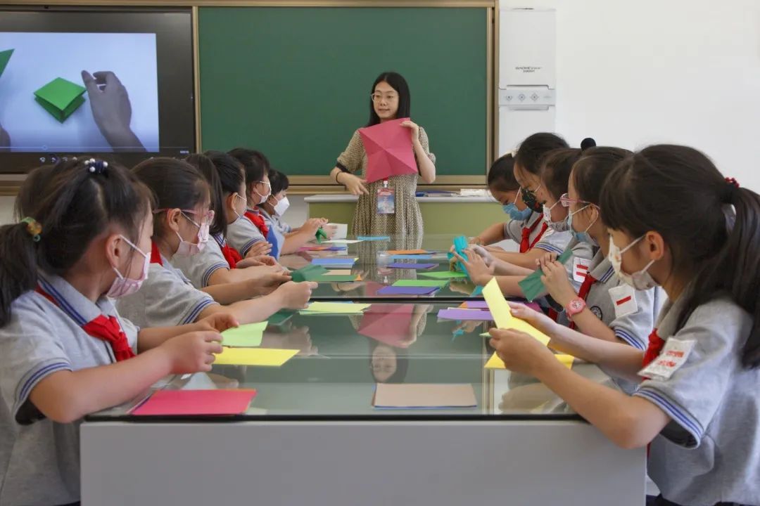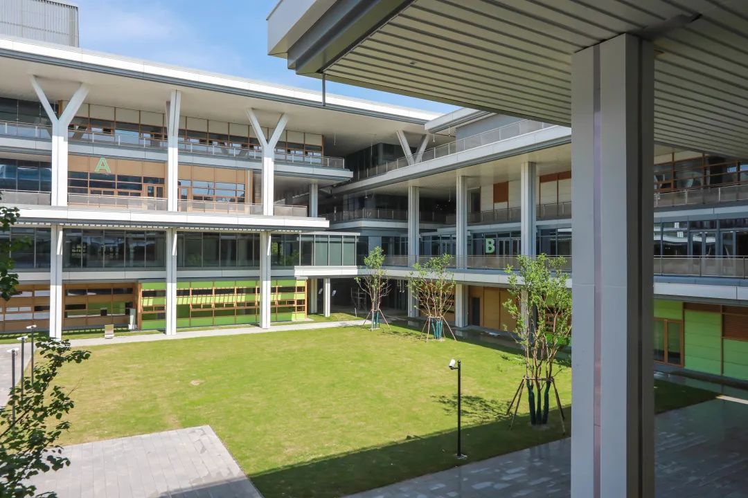 抬头便是满目苍翠,新馆中不少功能教室令人眼前一亮。教室采用了大面积透光玻璃墙的设计,让文化公园成为了课堂的“最美背景墙”。
