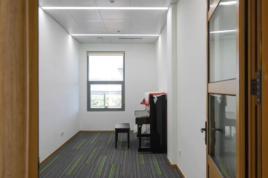每一间教室都配有专用桌椅,仅钢琴琴房,就分为单人、双人多种类型。舞蹈室还配备了男、女更衣室。