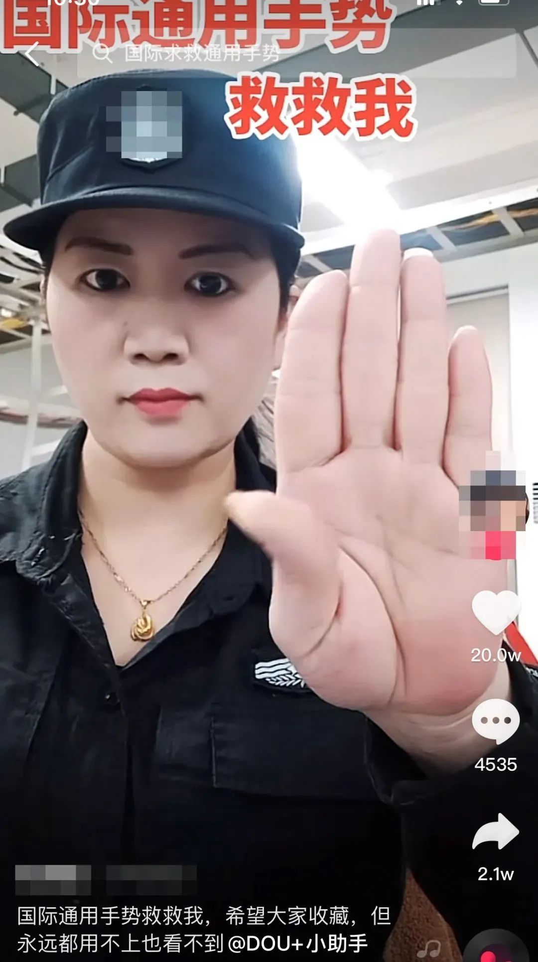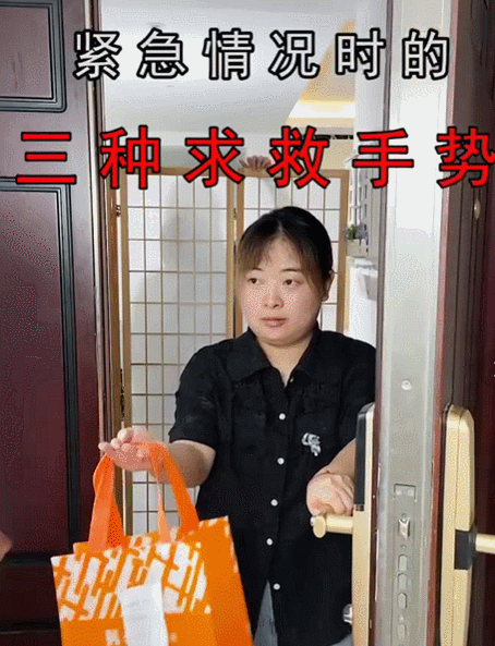在这些博主的视频中,哪怕你收外卖,外卖员将袋子挂在你的手上,只要你做这个手势,外卖员一定不会误会你是在拿袋子,并且能立刻知道你处于危险之中,可以说非常离谱了。