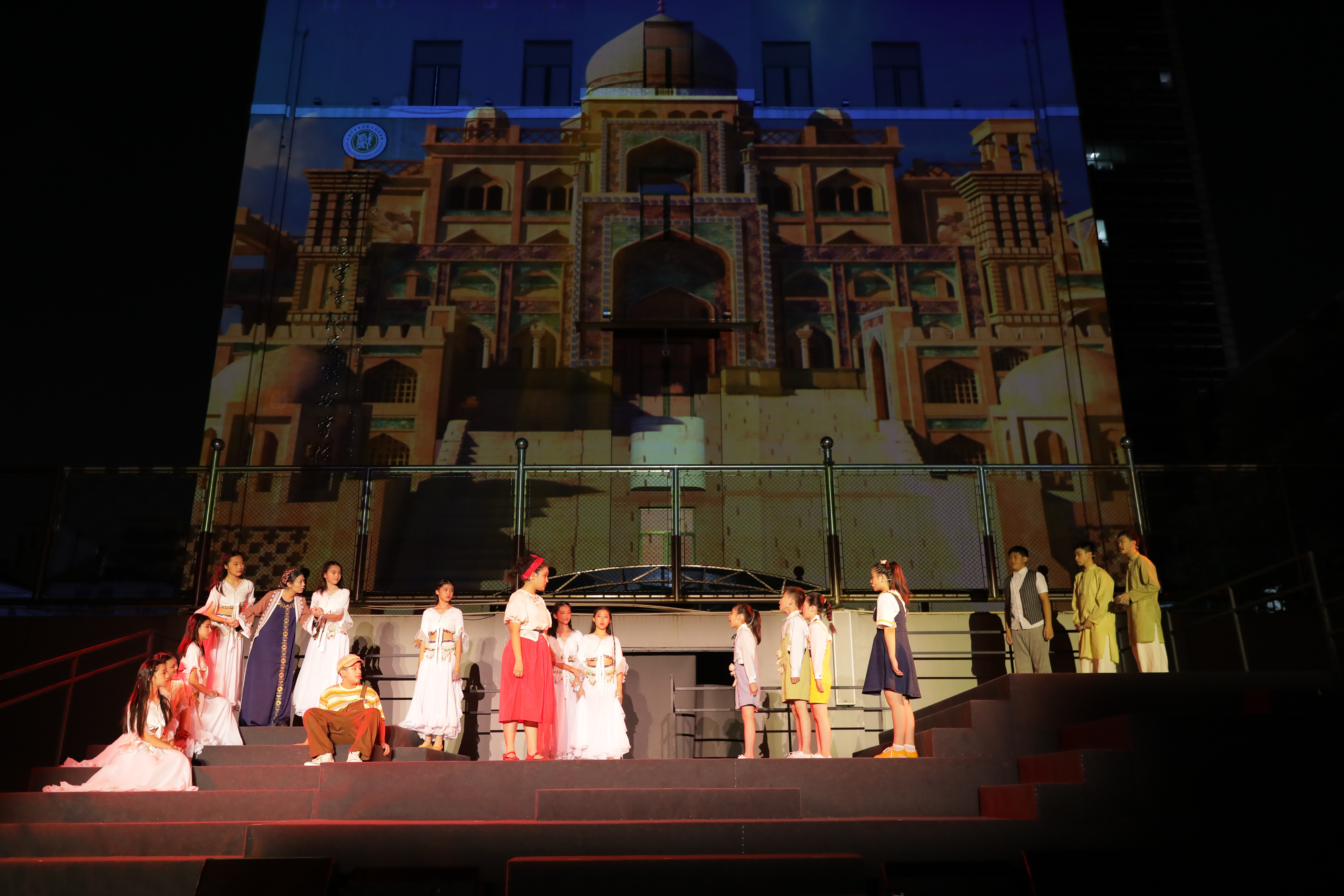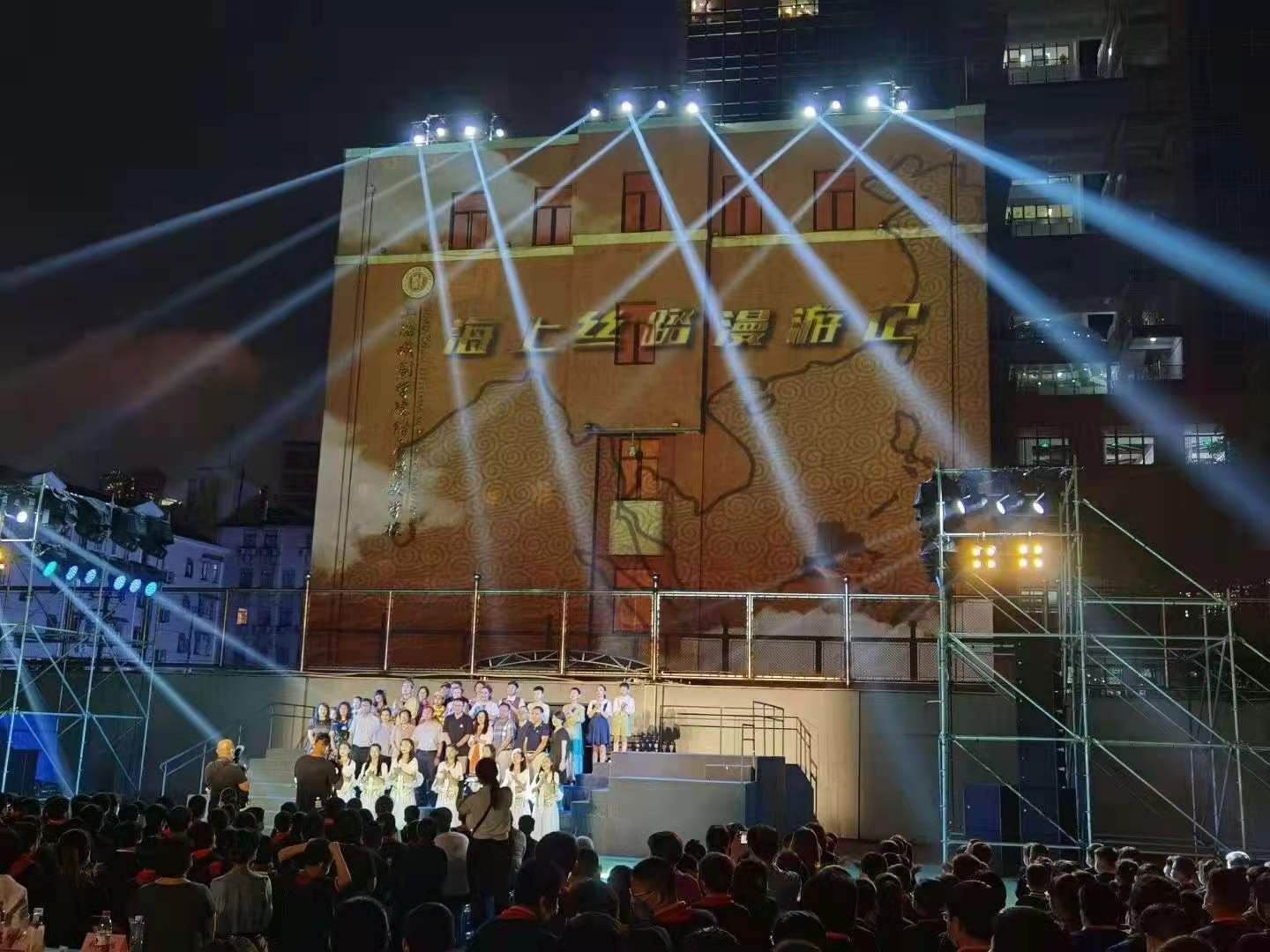活动现场,还举行了浸润式光影剧《海上丝路漫游记》公演活动。该剧由上戏附属静安学校师生自主创编和演出的,讲述了一群孩子重走海上丝绸之路的奇妙旅程。
