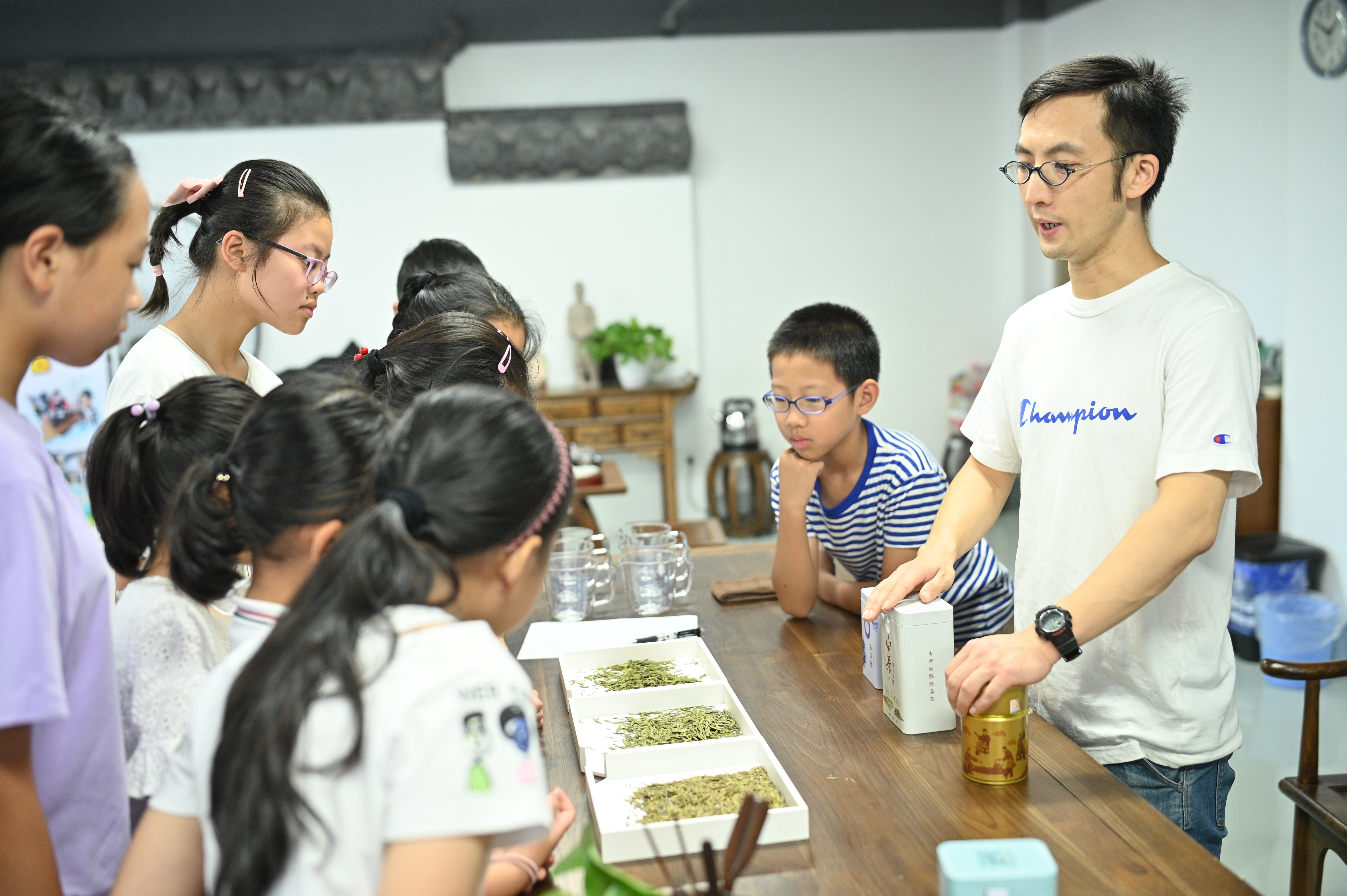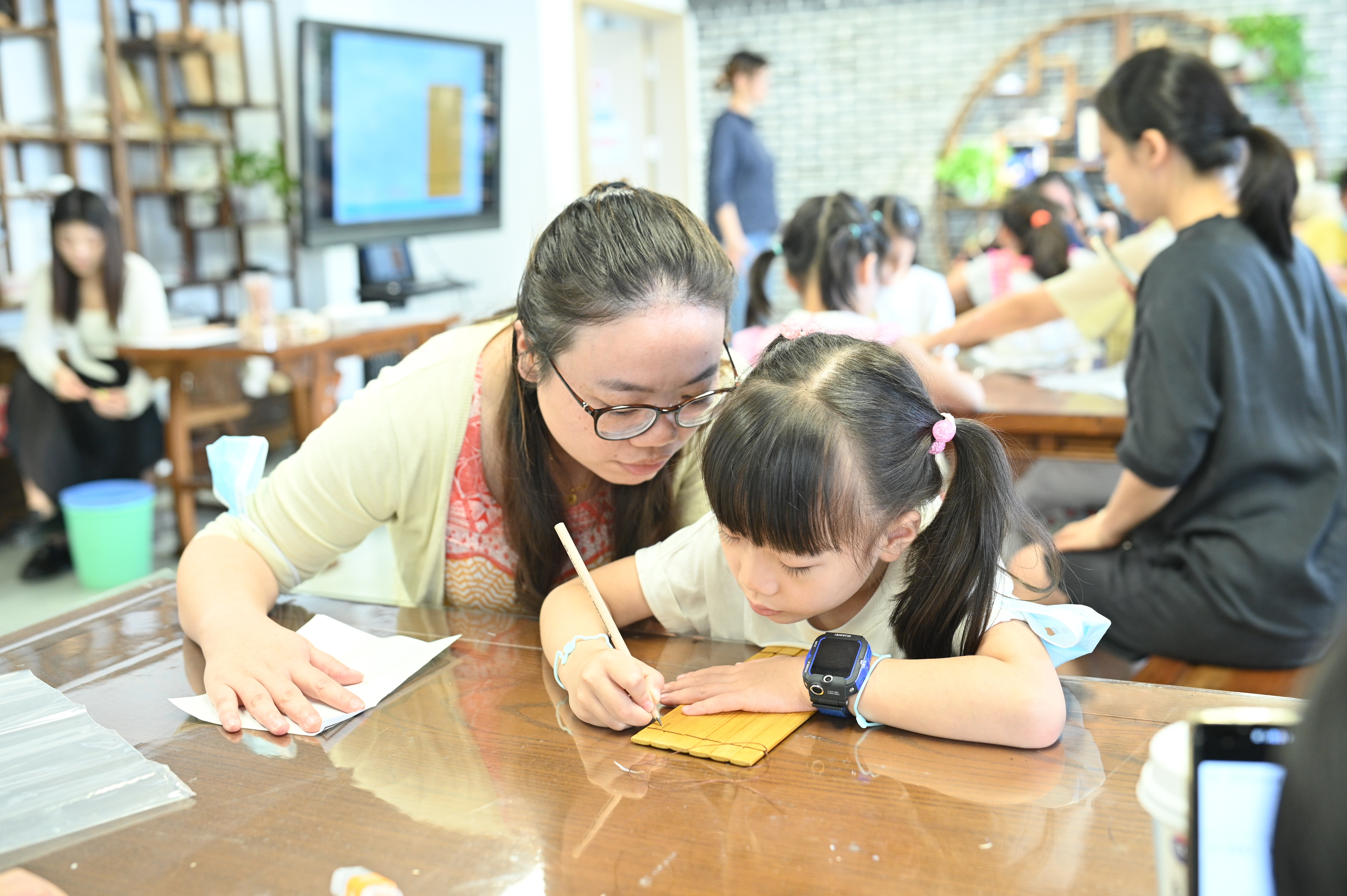 下午,茶艺(青少年走近茶文化主题)和古籍装帧(竹简制作主题)亲子活动也受到了家长和孩子的喜爱。茶艺体验中,孩子们学习了茶礼、泡茶、品茶,家长和孩子向老师积极提问,纷纷表示,希望经过这次的课程后,接下来在生活中也能做个品茶小能手。