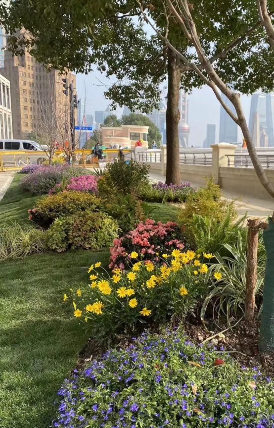 作为苏州河两岸公共空间贯通提升工程的起始段,北苏州路滨河岸线细分为四个特色路段——上海大厦蓝梦花园段、宝丽嘉酒店时光花园段、邮政博物馆信使花园段和河滨大楼星空花园段。滨水之畔,4个梦幻般的花园向我们温柔地敞开了“最美河畔会客厅”的大门。