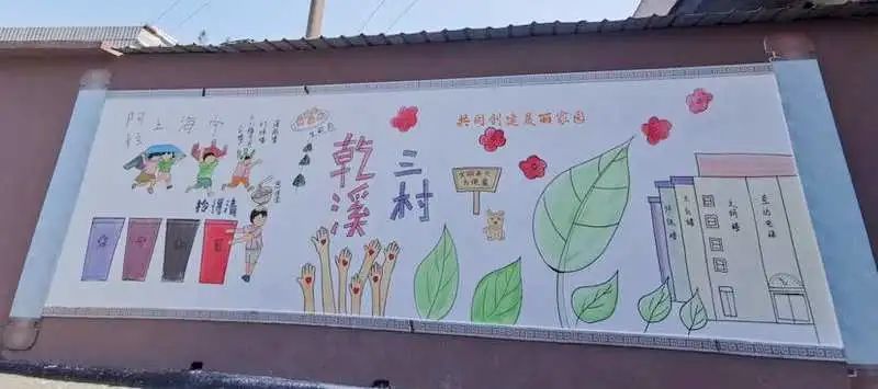 在乾溪三村,居委会也组织社区居民和小朋友们利用小区内闲置墙面,开展“文明”为主题的绘画活动。