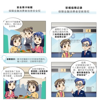 建设银行信用卡中心以消费者喜闻乐见的漫画形式,制作信用卡知识宣传漫画系列,在龙卡信用卡微信号上开设消保课堂,向消费者普及防范电信诈骗、个人信息安全、个人征信等19篇常用用卡知识。