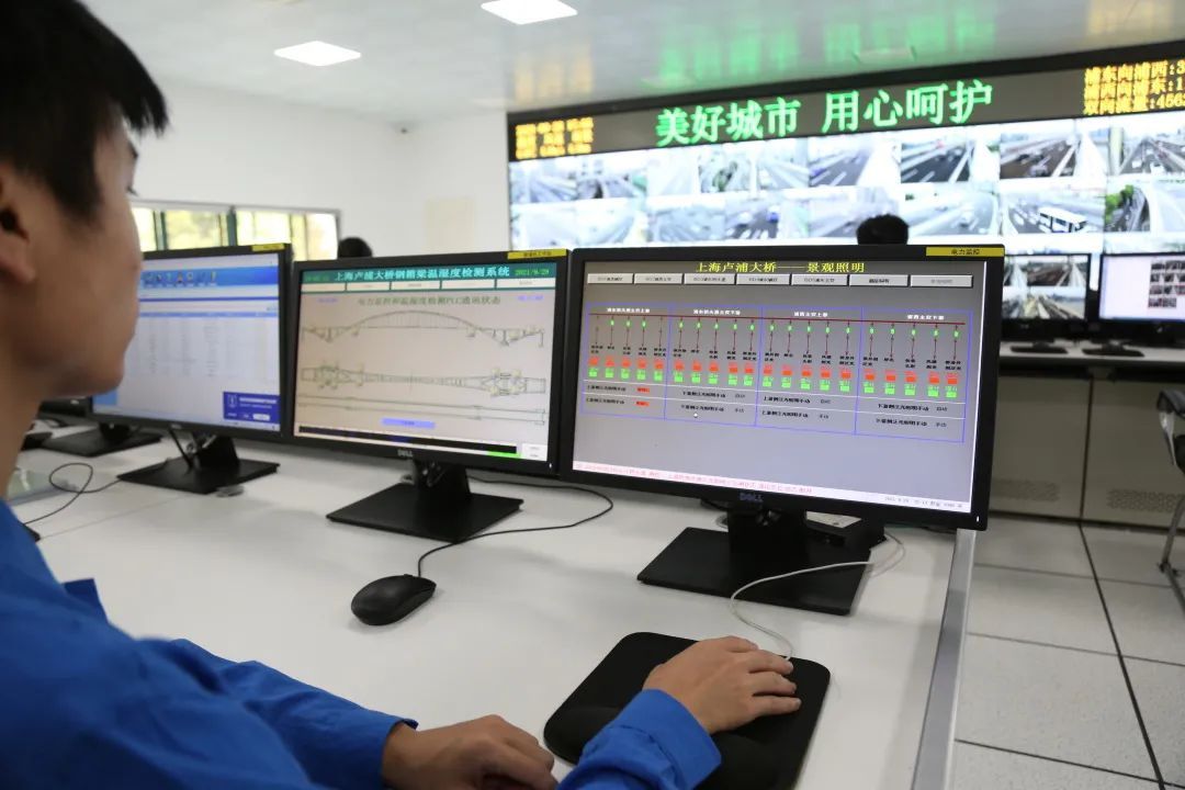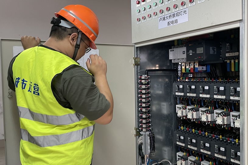 为做好国庆活动期间景观灯光的亮灯保障,在9月期间,运维人员在做好日常养护、巡视维修的基础上,还针对性开展了桥腹投影灯防腐预处理专项工作、控制电箱防坠安全升级工作、供电系统自切换检查工作、紧固件材质升级工作。同时,通过传感器实时监控外场机柜温湿度,利用信息化手段掌控灯光设施状态和故障原因等。