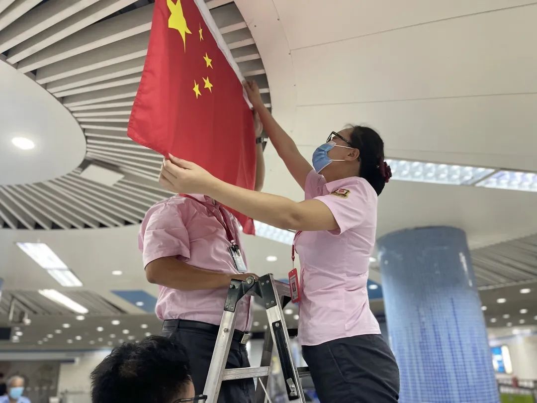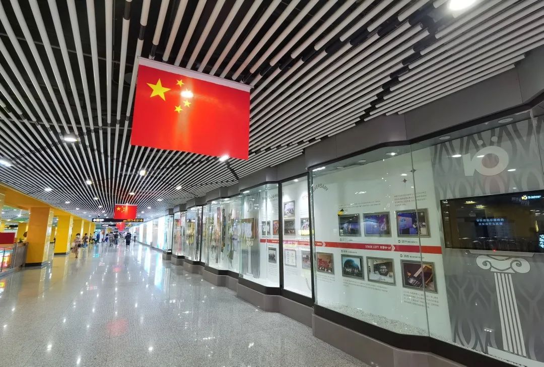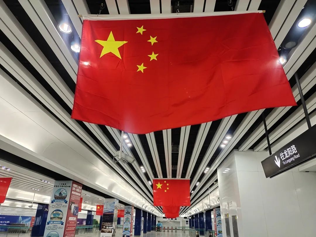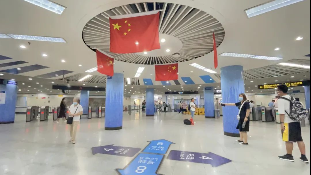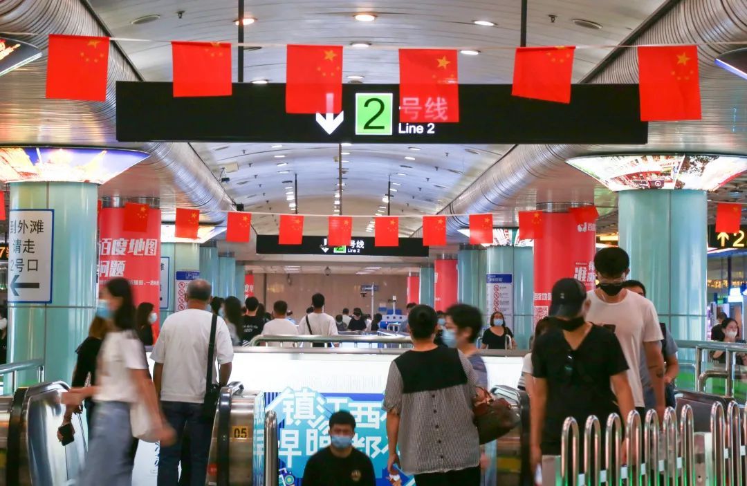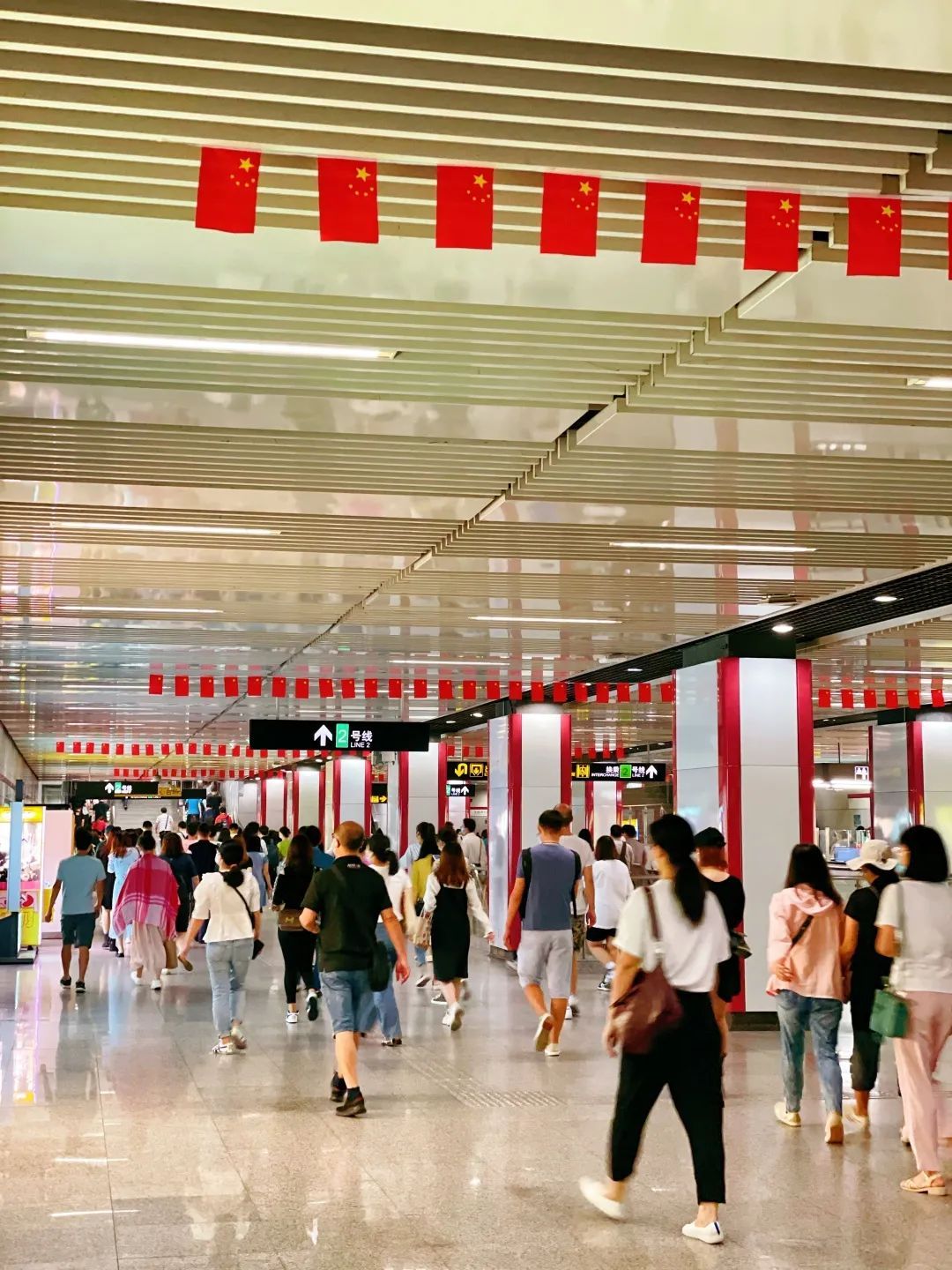 庆祝中华人民共和国成立72周年,上海地铁各车站、换乘大厅、地铁基地、办公楼等都装扮一新,营造出了浓浓的喜庆氛围。在地铁车站中,一面面鲜艳的五星红旗挂起;上海地铁移动电视以及120个车站LED大屏上,将播放宣传2021年国庆宣传主题海报,营造隆重热烈、喜庆祥和的节日气氛。