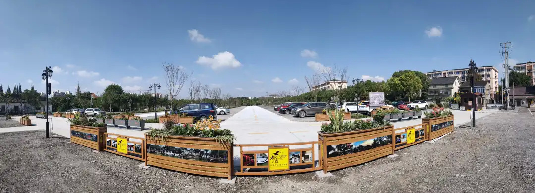 此处原为古镇景区临时停车场,砂石料场地扬尘较大且路面严重坑洼积水,大型车辆出入严重影响周边居民日常生活及游客的安全出行。自党史学习教育开展以来,枫泾镇探索对策,多途径挖掘资源增加停车位,以满足游客停车需求。今年5月,对该地块进行全面改造,拆除存量违建约600平米。
