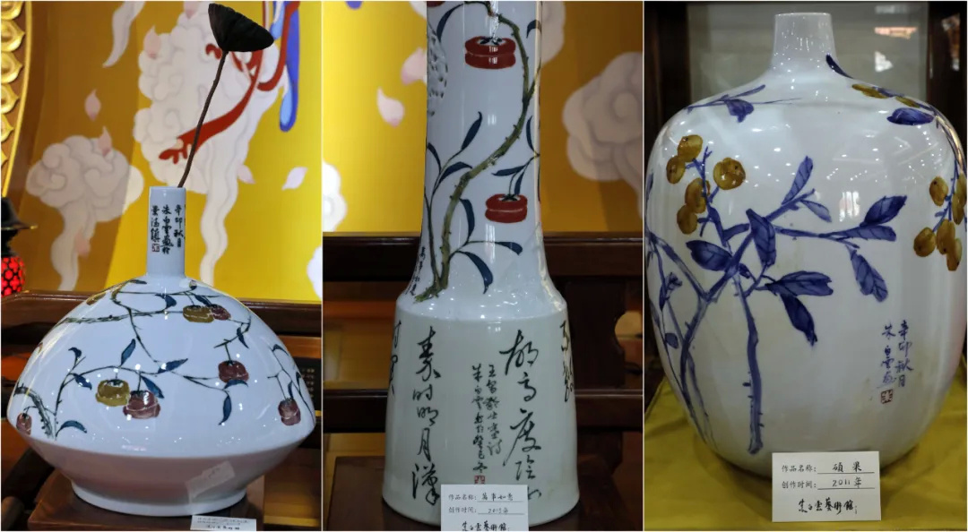 日前,朱白云艺术馆在金山卫镇万寿寺正式成立,展示了朱白云的原创书法、绘画、瓷画等作品60余幅(件)。