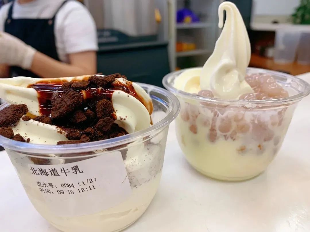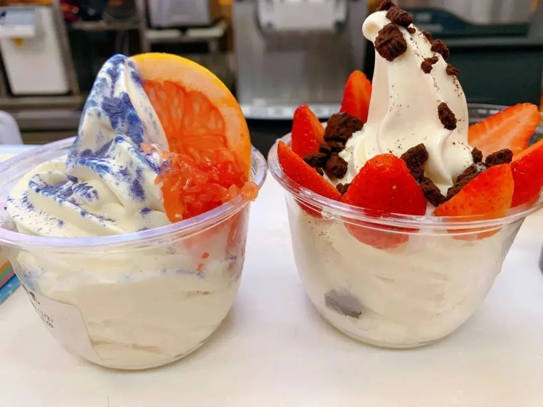 比水吧饮品更值得期待可能就是盲盒冰淇淋的惊喜了,奥利奥、西米露、西柚、草莓,都有可能装点你的冰淇淋。