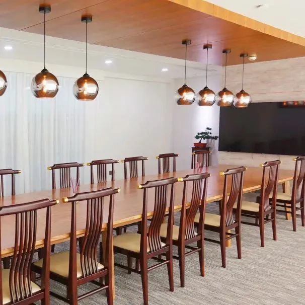 新中式会议室典雅大气,封闭式包厢确保不受打扰,可容纳多人会议。会议室也配备了多媒体设备,古色古香的木质家具和装饰给人安宁和沉静的感觉,营造出静心雅致的氛围,有利于凝神思考。需要借用两间大会议室可以提前向经理预约。