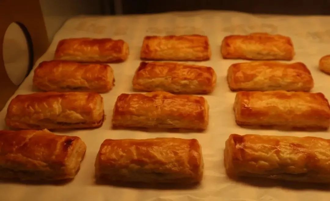 金黄的羊角包有酥酥脆脆的外皮,层层叠叠,搭配咸蛋黄流沙馅,一口咬下去,沙沙甜甜的口感混合浓郁的黄油香气,吃货的好心情就此开启。