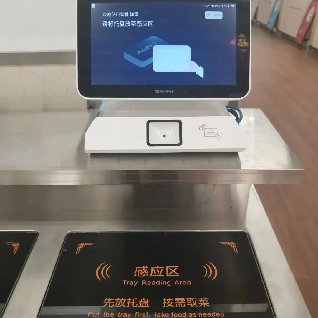 进门取好托盘,进行一卡通绑定后,你就能带盘自助选取想吃的美食啦。取餐后智能称重,按“克”计价,无感支付,既方便又实惠。自助选餐,精准取量,价格精确,营养搭配自己做主,每天光盘成习惯!