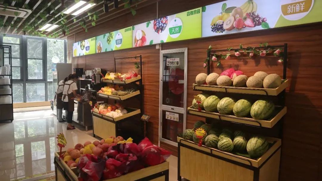 水果铺选用每日鲜果,现榨新鲜果汁,种类繁多,有清凉退火的雪梨汁、西瓜汁,也有芒果香蕉牛奶、红心火龙果梨汁等鲜榨饮品,多种水果的复合搭配,每天都能喝到不重样的新鲜果汁。