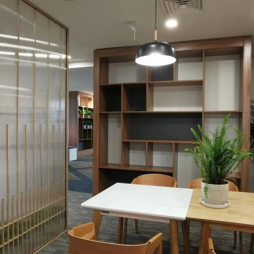 改造后的咖吧最大亮点就是布局灵活,为不同类型的自习、办公和研讨场景提供区域和条件,散座区、吧台区、讨论室以及会议室互不干扰、和谐共存,开放又不失安定的布局让小空间释放出大天地的能量。覆膜铝合金与亚膜玻璃的搭配将空间隔开,错落有致,尽量不影响采光,在增加了整体感的同时,也使得空间更为宽敞。每个区域都拥有舒适的尺度感,使咖啡厅的氛围更为和谐温馨。