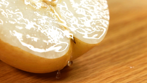 秋月梨的水分真的很足!可以达到85%,一口下去感觉就是一汪甜蜜的糖水,瞬间就能被它惊艳到!咬一口,牙齿与果肉相碰撞发出清脆的声音,吸一口汁水,甜入心底。哪怕没有榨汁机也没关系,秋月梨水嫩汁多,一点渣渣也没有!