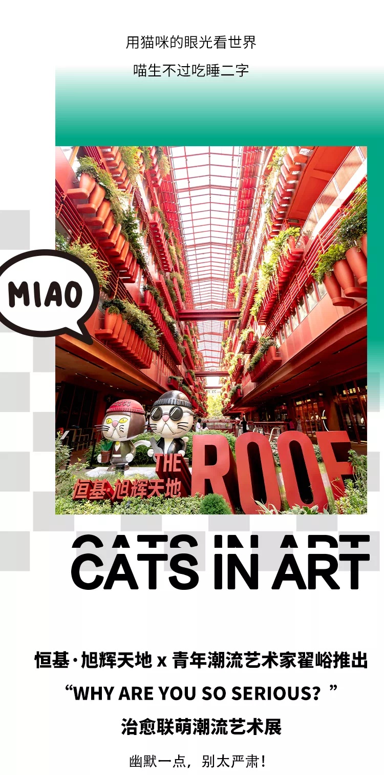 恒基∙旭辉天地首次联名青年潮流艺术家翟峪推出治愈潮流艺术展,巨好拍的打卡点外帮你赶走所有不开心!还有口罩、帆布袋、T恤、猫罐头等周边,别太严肃,来幽默笑一笑吧。