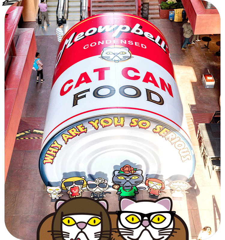 在恒基∙旭辉天地入口处,是这次潮流艺术展的主要展品《KILLER》,快来跟这两只炫酷表情的猫咪合照,墨镜背后其实隐藏着感人的爱情故事。