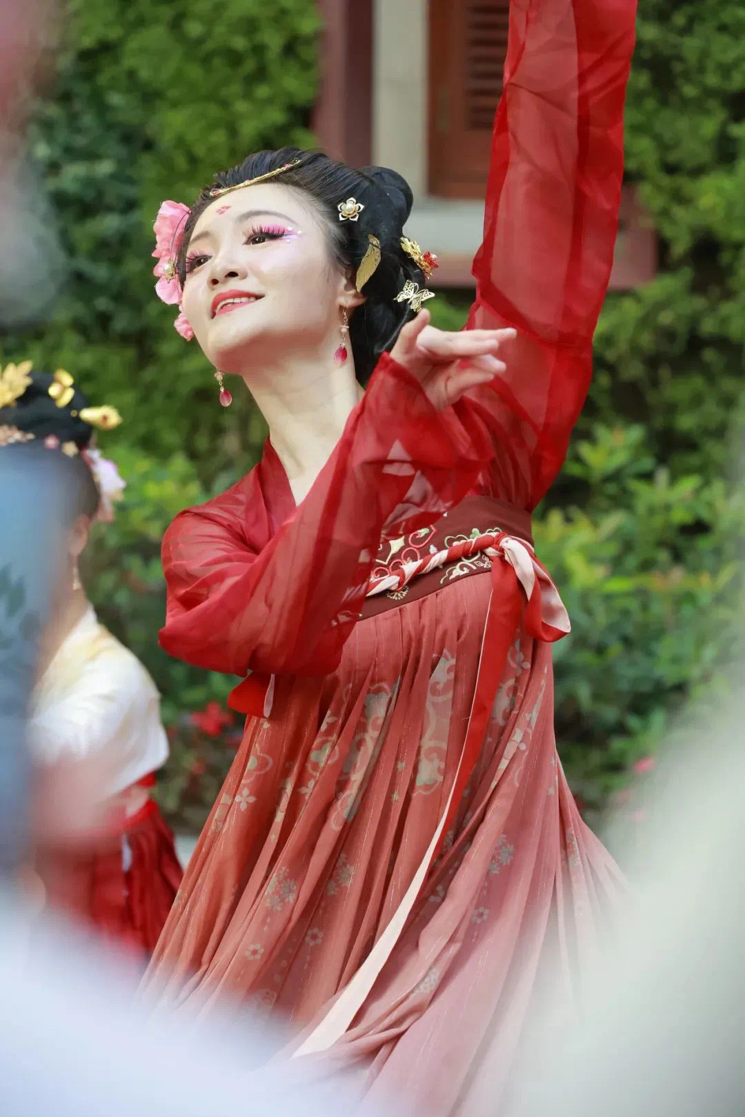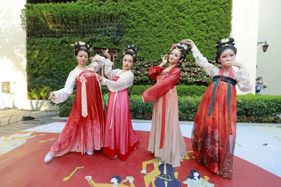 第一台演出是唐宫国风舞。精致的古风妆扮,曼妙的舞姿,不仅让文艺爱好者趋之若鹜,也让普通公众近距离接触到平日难得一见的传统文化。