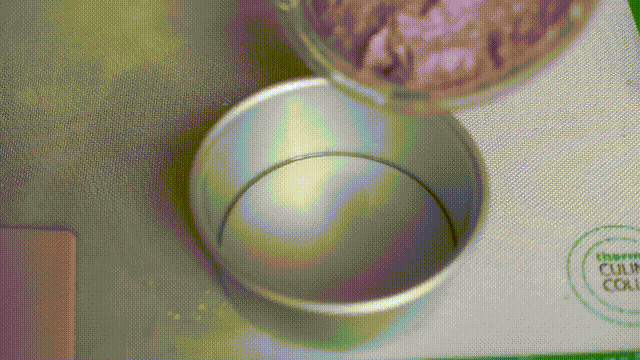 3. 6寸模具涂油,将面糊倒入,38°C发酵60分钟发至9分满。