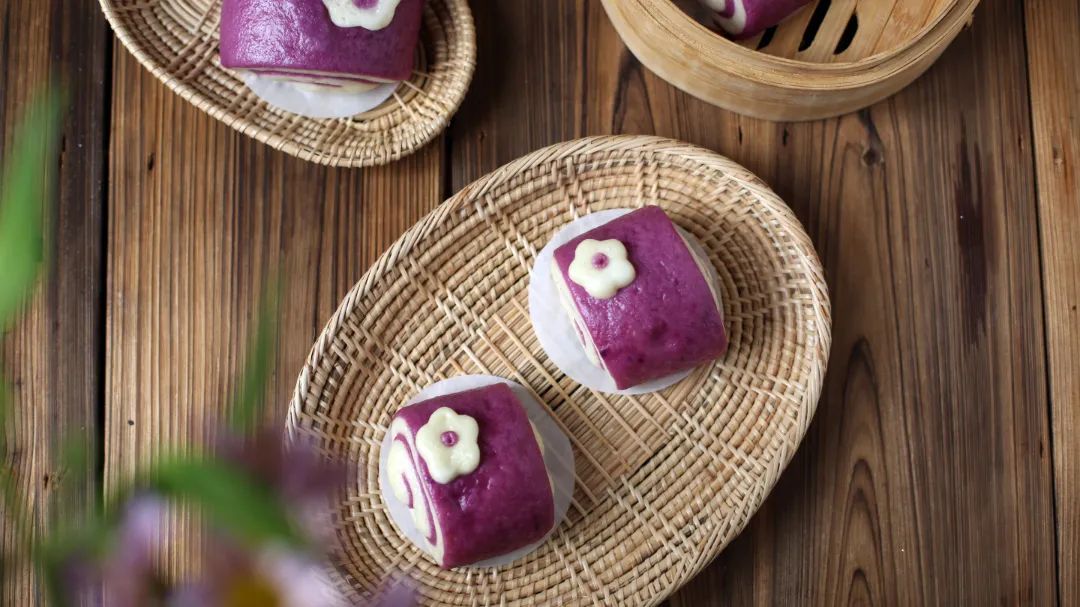 双色紫薯花朵馒头