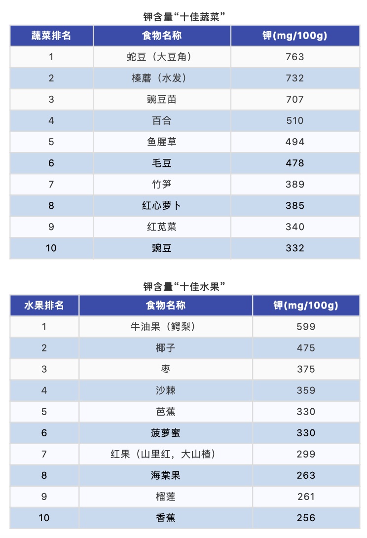 ■钾含量“十佳果蔬”