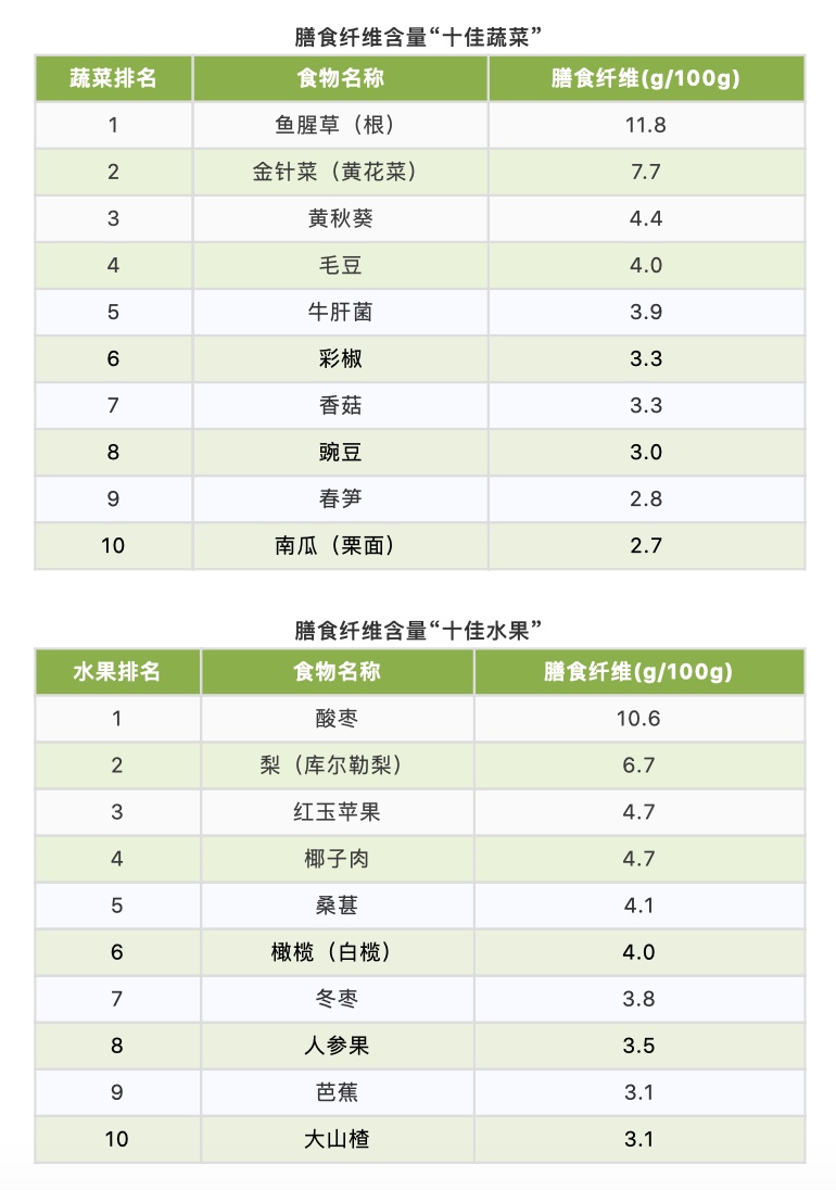 ■ 膳食纤维含量“十佳果蔬”