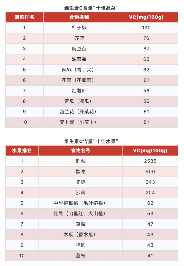 ■ 维生素C含量“十佳果蔬”