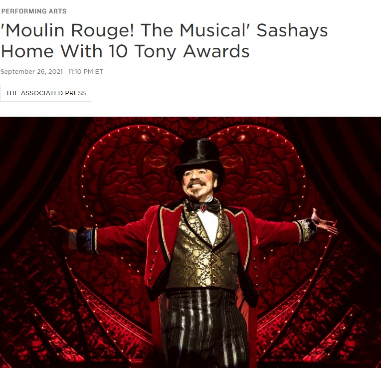 托尼奖公布获奖名单《红磨坊!》获10项大奖