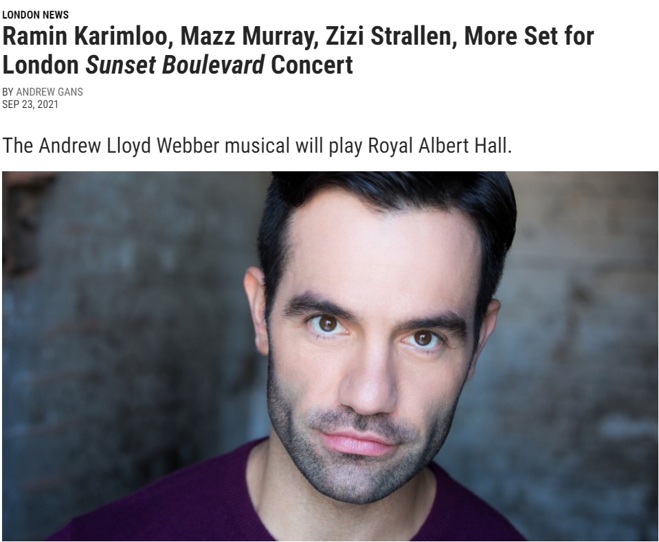 继六月在伦敦亚历山德拉宫演出两场后,韦伯作曲的音乐剧《日落大道》音乐会将于12月3日在伦敦皇家阿尔伯特音乐厅演出。