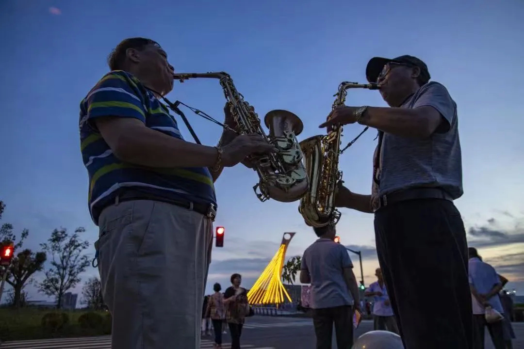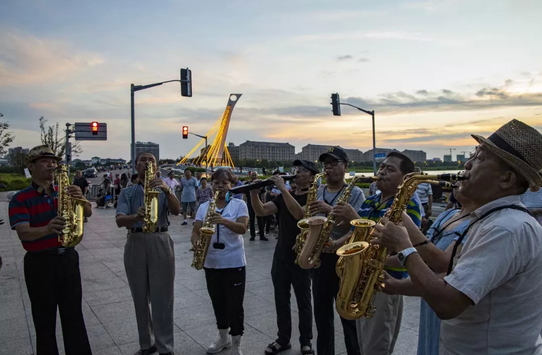 每天傍晚5点45分,在白牛塘桥边,李小枫跟10多位退休的老伯如约而至。他们在安装、调试完萨克斯后,6点准时开始演奏,老伯们吹得如痴如醉,周边的居民则应景地开始伴舞,快乐又和谐。