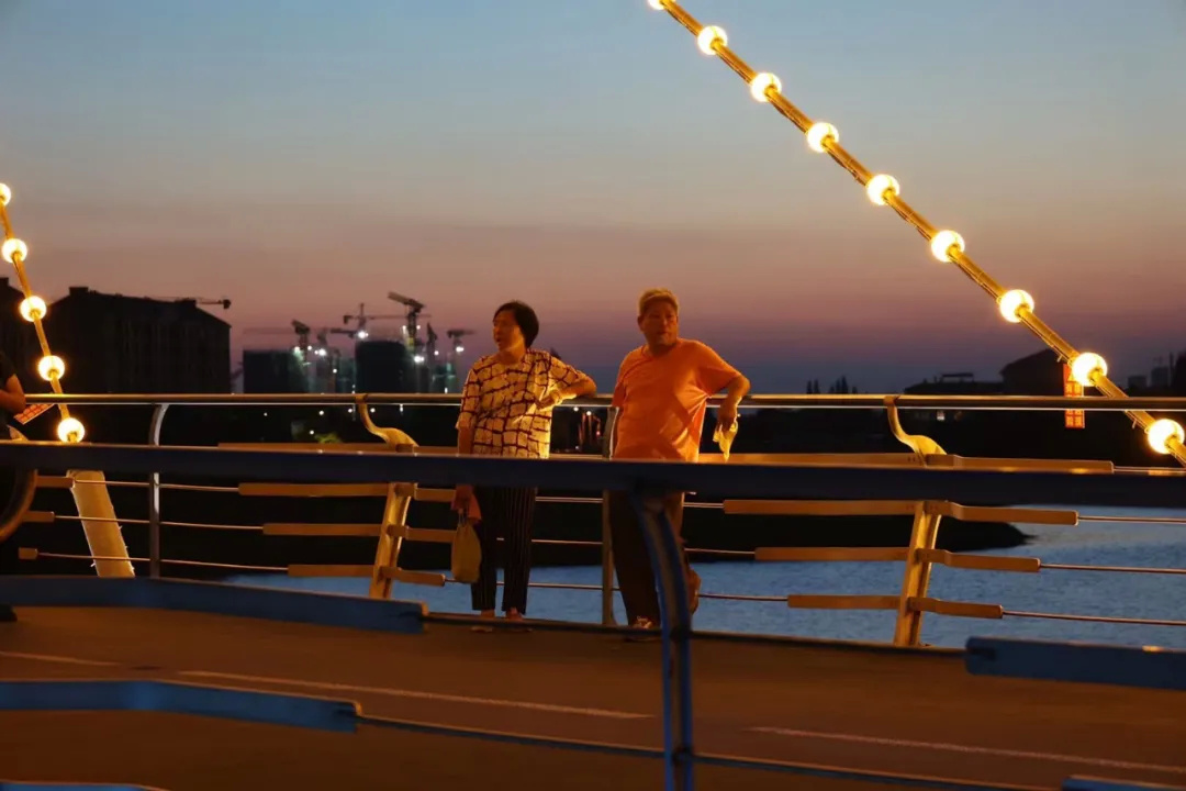 “马上亮灯了,我们快点走。”“如今的白牛塘桥婉如枫泾版的‘外滩’。”晚上6点,随着夜幕慢慢降临,周边居民三五成群的散步至白牛塘桥,“以前散步漫无目的,现在每天到这里,驻足停留赏风景,俨然成了生活中的一部分。”前来散步的阿姨们说。