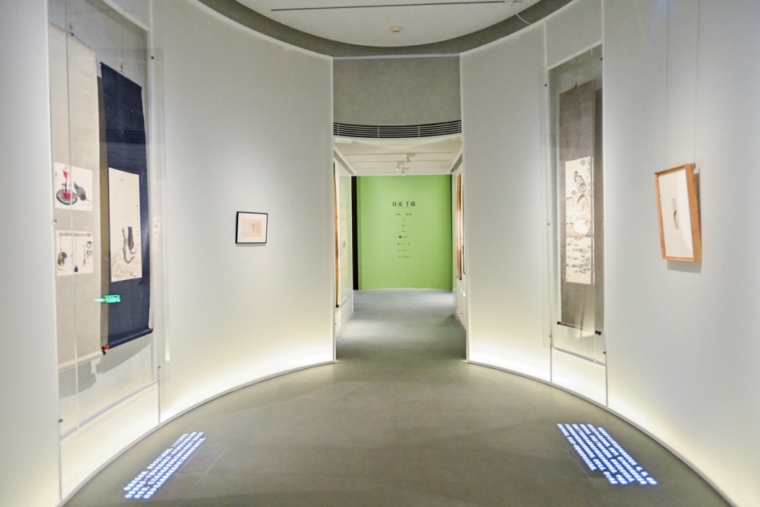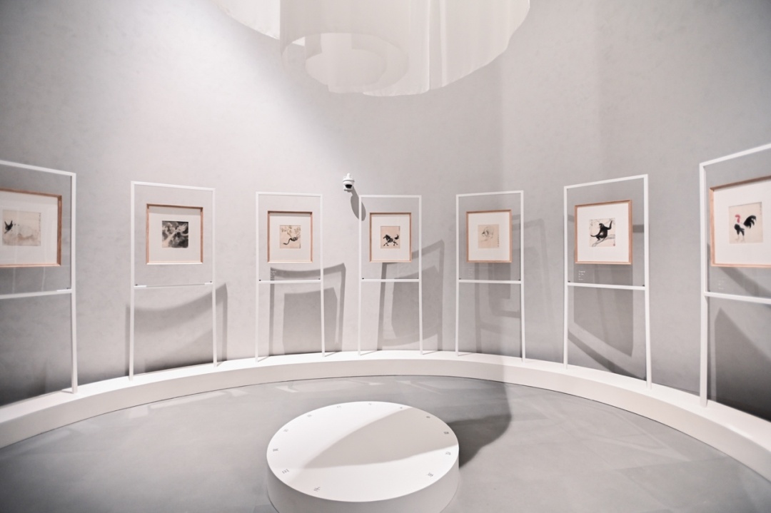 在展厅中,有一个特别的环形空间,展出了徐悲鸿的《十二生肖》作品。这是徐悲鸿旅居新加坡时所创作的,画的轻松而又完整。这套《十二生肖》是目前已知最早的徐悲鸿绘十二生肖。此外传世的同类作品只有两套,一套是徐悲鸿1945年因与蒋碧薇离婚所画,一套是1946年为送张倩英游欧所画。《十二生肖》的展厅设计也很独特,为观众营造了一个互动的空间。《十二生肖》呈圆形环列四周,顶上是一个圆形的装置,下面正对应的是一个圆形的台面,观众可以站在台面上寻找自己对应的属相。