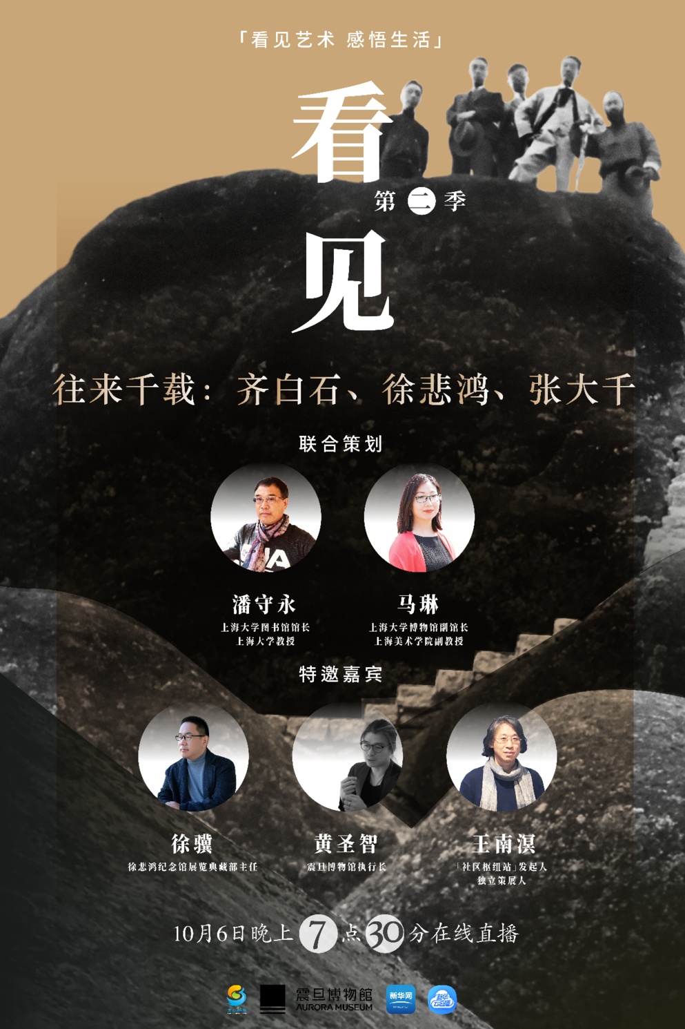 在震旦博物馆,《看见》栏目主持人潘守永、马琳将与徐悲鸿纪念馆展览典藏部主任徐冀、震旦博物馆执行长黄圣智、“社区枢纽站 ”发起人、策展人王南溟一起带你走进齐白石、徐悲鸿、张大千的艺术世界,讨论他们的交往佳话与艺术成就,重温中国现代艺术的开端,三位大家对艺术的执着追求。