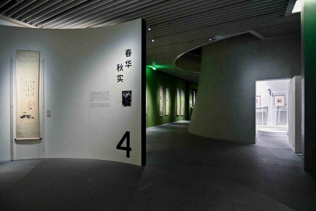 在“春华秋实”这个展区,有一组作品是齐白石、徐悲鸿、张大千描绘的丰收的果实的作品。张大千和徐悲鸿都以柿子为主题,齐白石以葡萄为主题,很有意趣的体现了徐悲鸿书写的“秋风催果熟,凝露益华明”。三位艺术家的风格和表达虽不尽相同,但都体现了中国画改良与艺术创新上的共鸣。