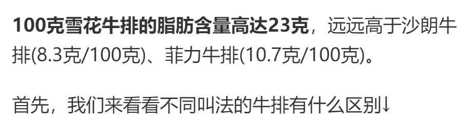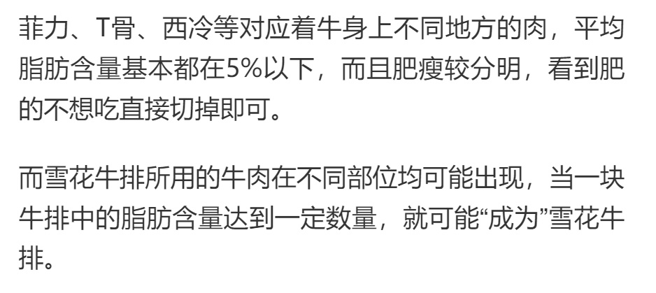 一块雪花牛排里有多少油脂?
