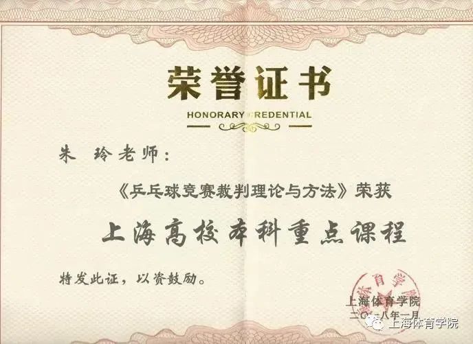 据了解,朱玲带领乒乓球竞赛规则理论学习团队开设特色课程《乒乓球竞赛裁判理论与方法》,在2018年荣获上海高校本科重点课程。“施院长一直强调,在传授乒乓球裁判最新专业理论知识的同时,切记要注意引导学生树立正确的人生观、价值观和世界观,要培养当代大学生的吃苦耐劳、无私奉献、谦虚谨慎、团结协作的精神,这样去做,才是一门育人育德的好课程。”