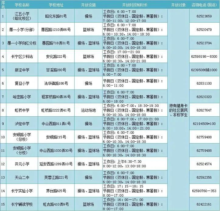 为充分利用学校体育场地资源,满足广大青少年和人民群众日益增长的体育健身需求,在做好常态化疫情防控和确保校园安全、师生健康的基础上,2021学年第一学期,长宁15所学校的室外体育场地继续向社会开放。