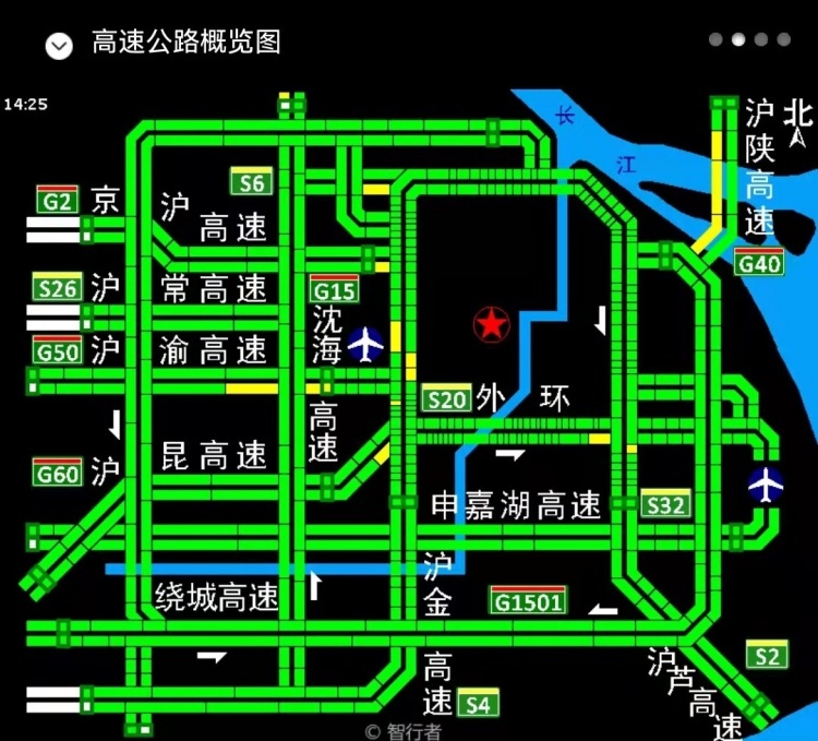 市交通委交通指挥中心说,截至16时,全路网缓行路段有:G40市区方向51K至38K(长江大桥)缓行13公里、36K至28K(长江隧道)缓行8公里;G50市区方向45K(朱枫立交)缓行1公里;S32浦东机场方向26K(林海立交)缓行1公里。