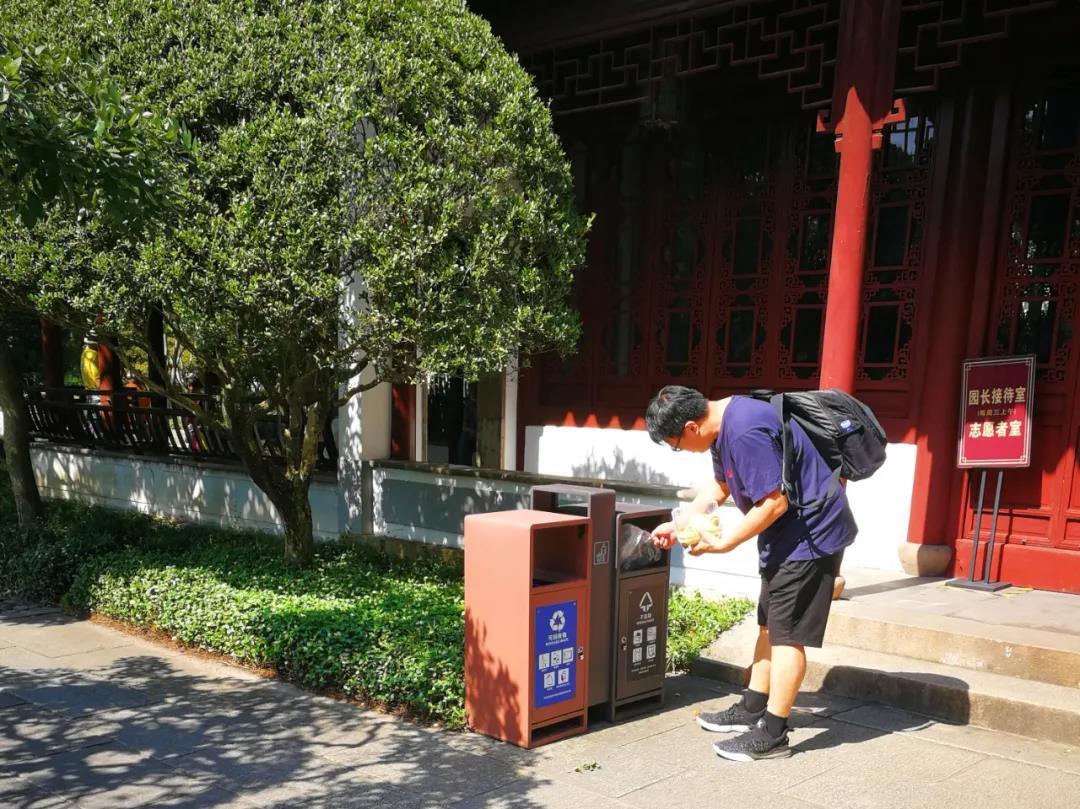 进入景区,文明旅游行为公约指示牌、文明标语展示栏以及“禁止攀爬 注意安全”等提示牌图文并茂、一目了然。园林环境干净整洁,地上很少有果皮、纸屑等垃圾。有些游客一时间找不到垃圾桶,也会将垃圾拿在手里,看到保洁员后再将垃圾扔到手提垃圾桶内。