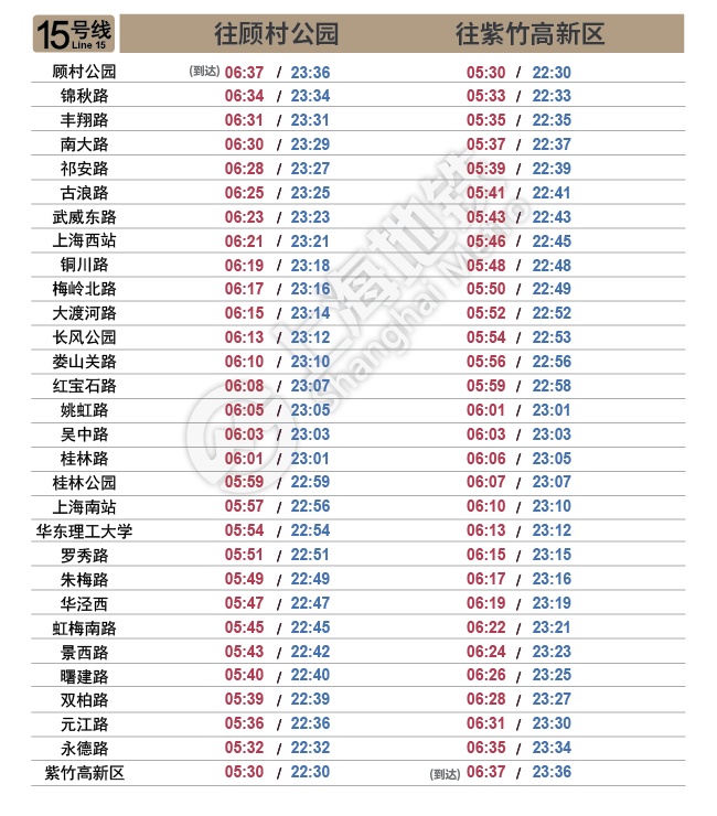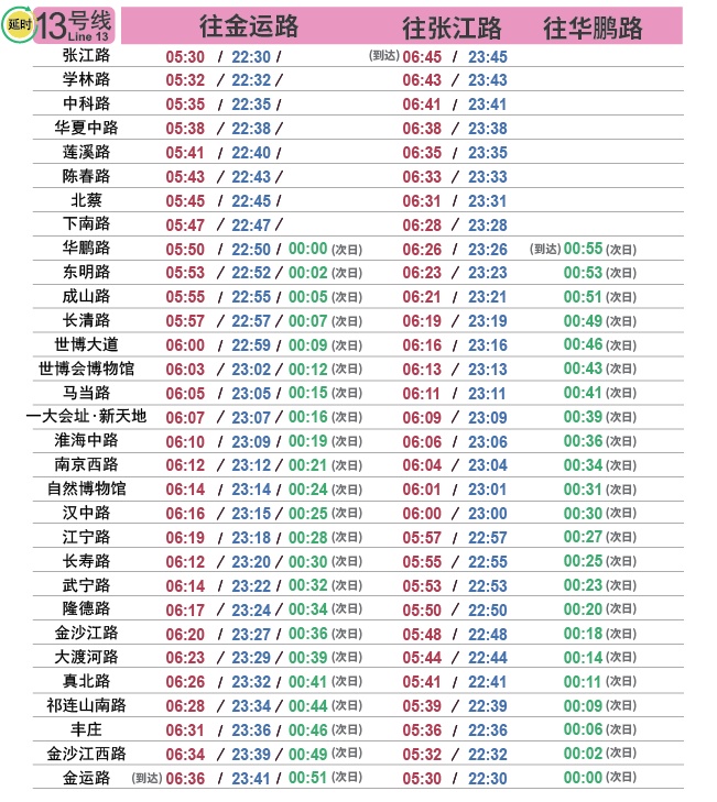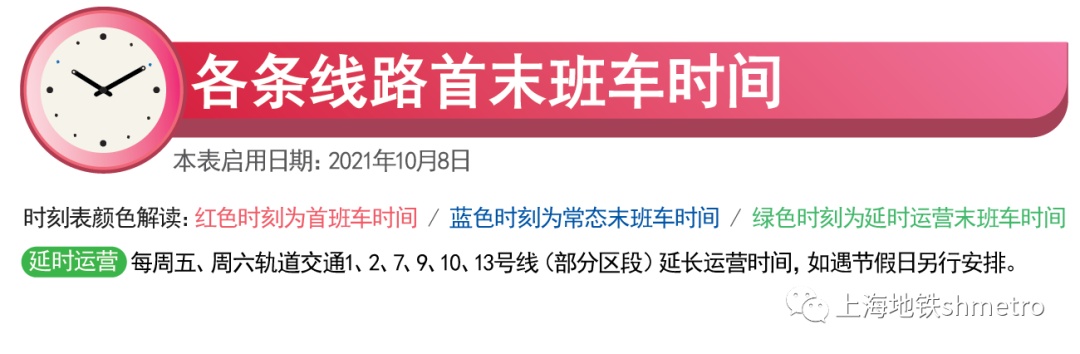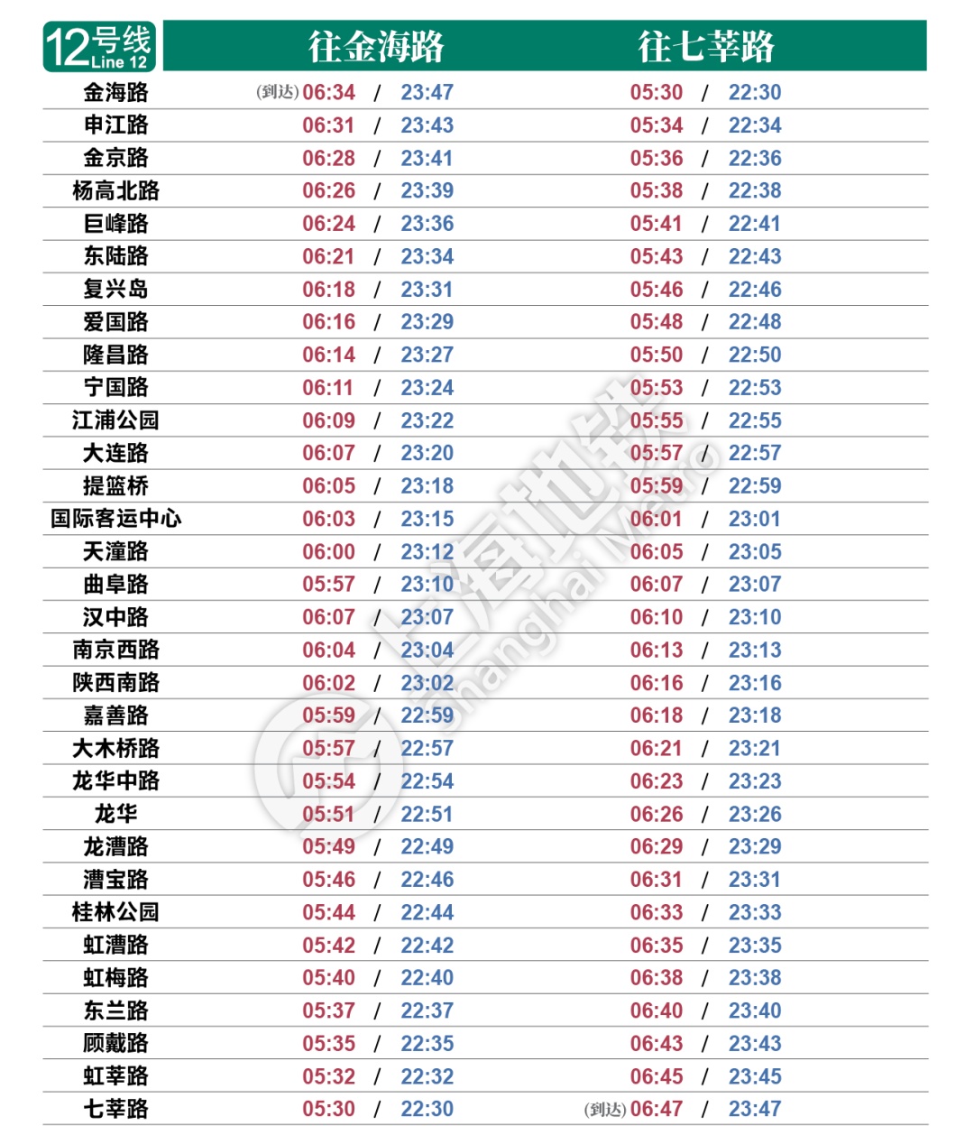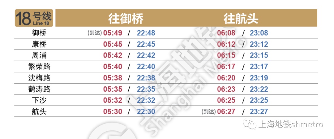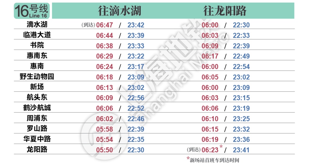 申通地铁集团说,今天(10月8日)起,浦江线(汇臻路站-沈杜公路站)全线首班车将提前30分钟,整体运营时间有所延长、列车间隔维持不变。上海地铁各线首末班车时刻表也随之更新,小伙伴们记得收藏哦!