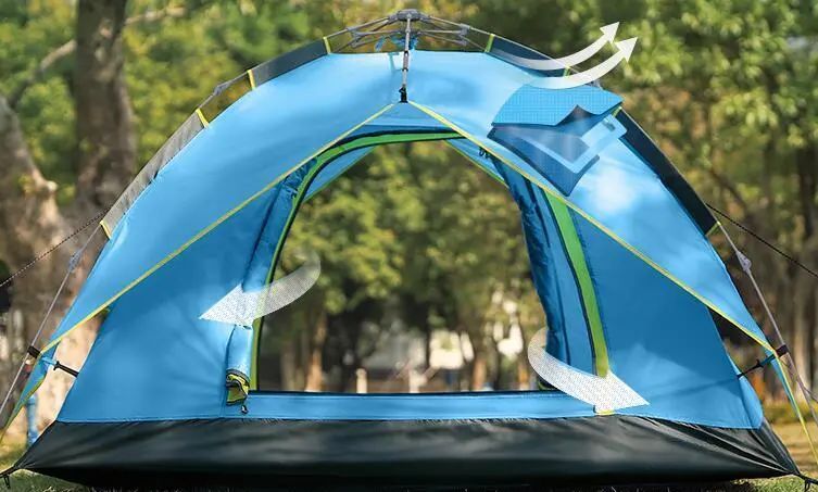 帐篷内应能保持空气的持续流通,减少废气积聚,单层帐篷或双层帐篷的内层,应用透气面料制成。双层帐篷的内外层之间应能有效通风。由非透气面料制成的单层帐篷,要保证每个人至少有一个面积为100cm2的通风口,通风口应尽可能高,并且位于帐篷相对的两侧。
