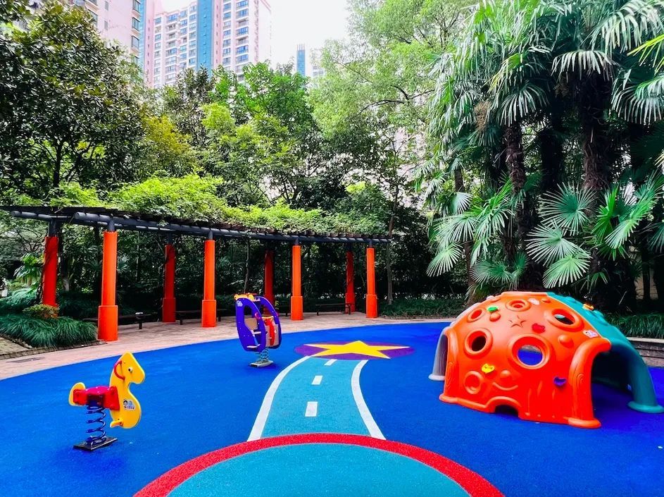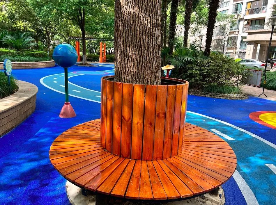 同时,儿童乐园还人性化地增设了家长休憩区,选取视角最好的大树,在周边围上一圈木质板凳,让家长们看护、休息两不误。