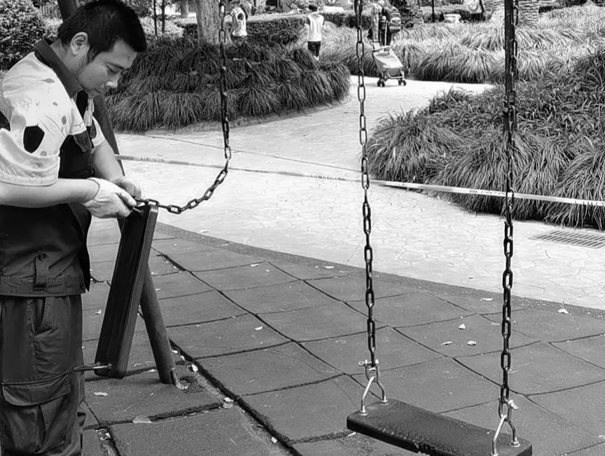 扭曲变形的秋千座椅也被更新为了更牢固、更适合低龄儿童的款式……全新的设施一“上线”,便得到了许多孩子的青睐。