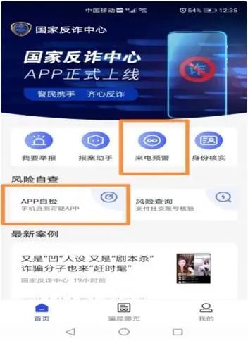 注册成功后,点击“APP自检”,即可自行检测手机中存在诈骗风险的APP。点击“来电预警”-“立即开启”,即可开启全方位诈骗预警。