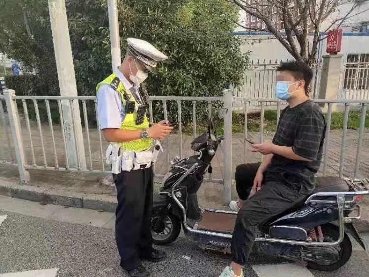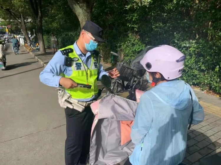 2021年10月8日7时56分,青浦公安民警在公园东路华青路路口南侧,对违法当事人金某实施“电动自行车驾驶人未佩戴安全头盔的”违法行为,处以罚款30元。
