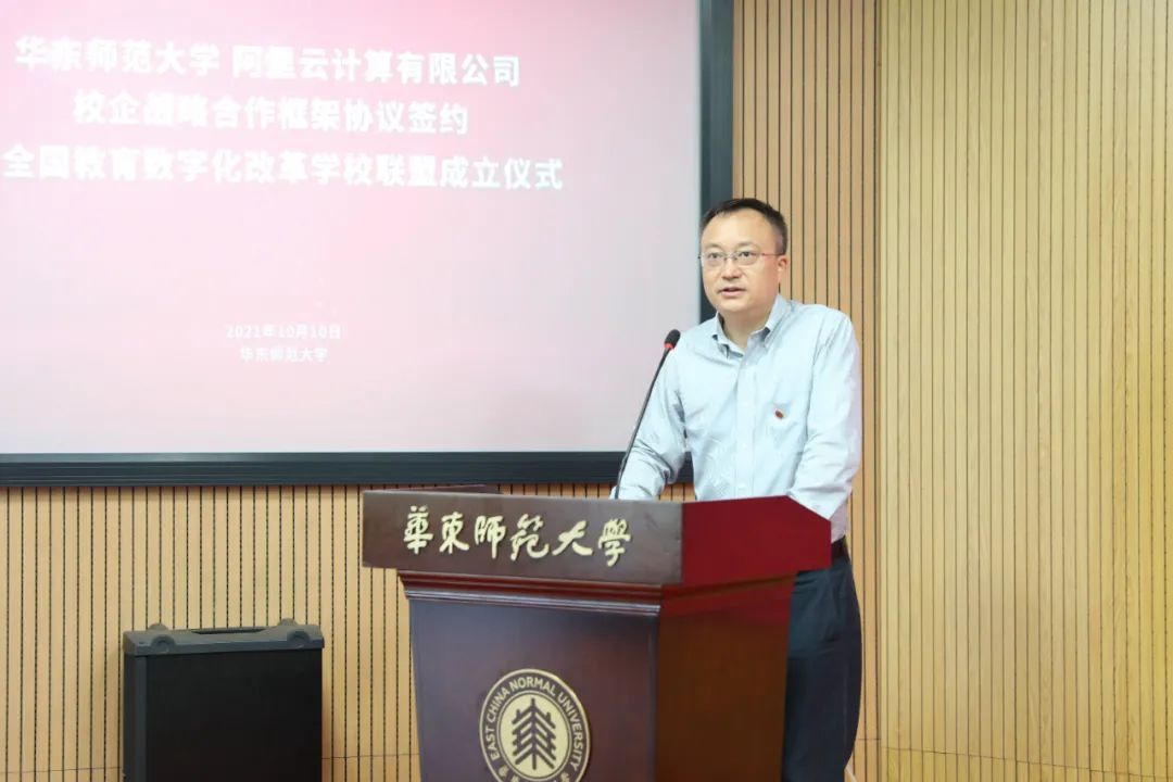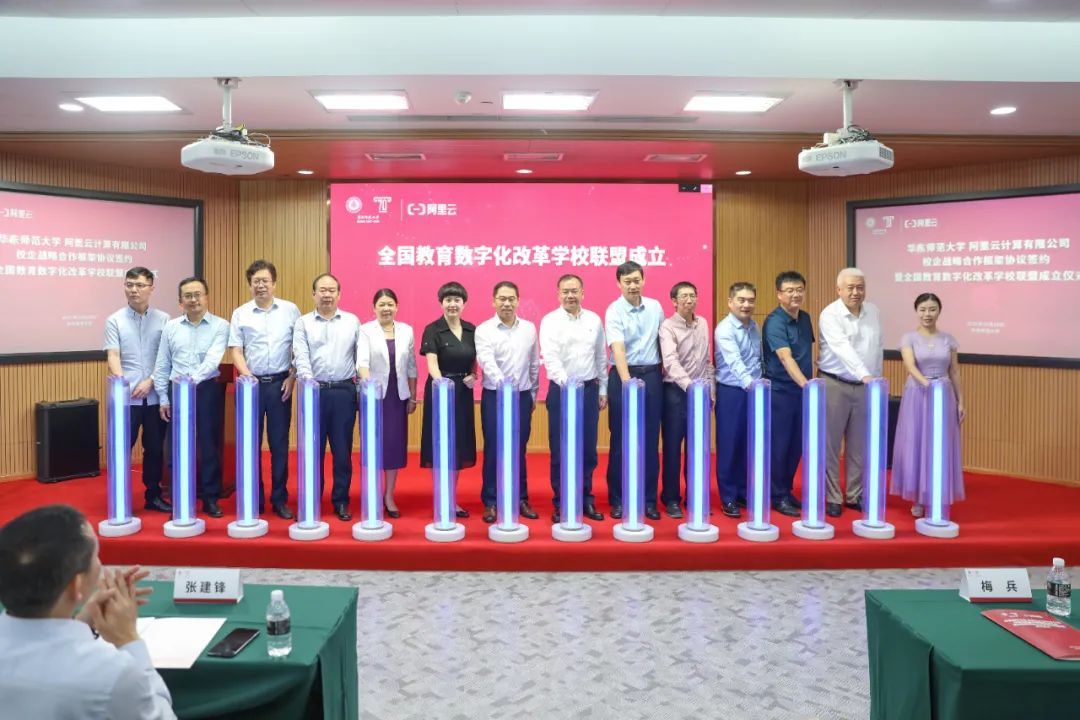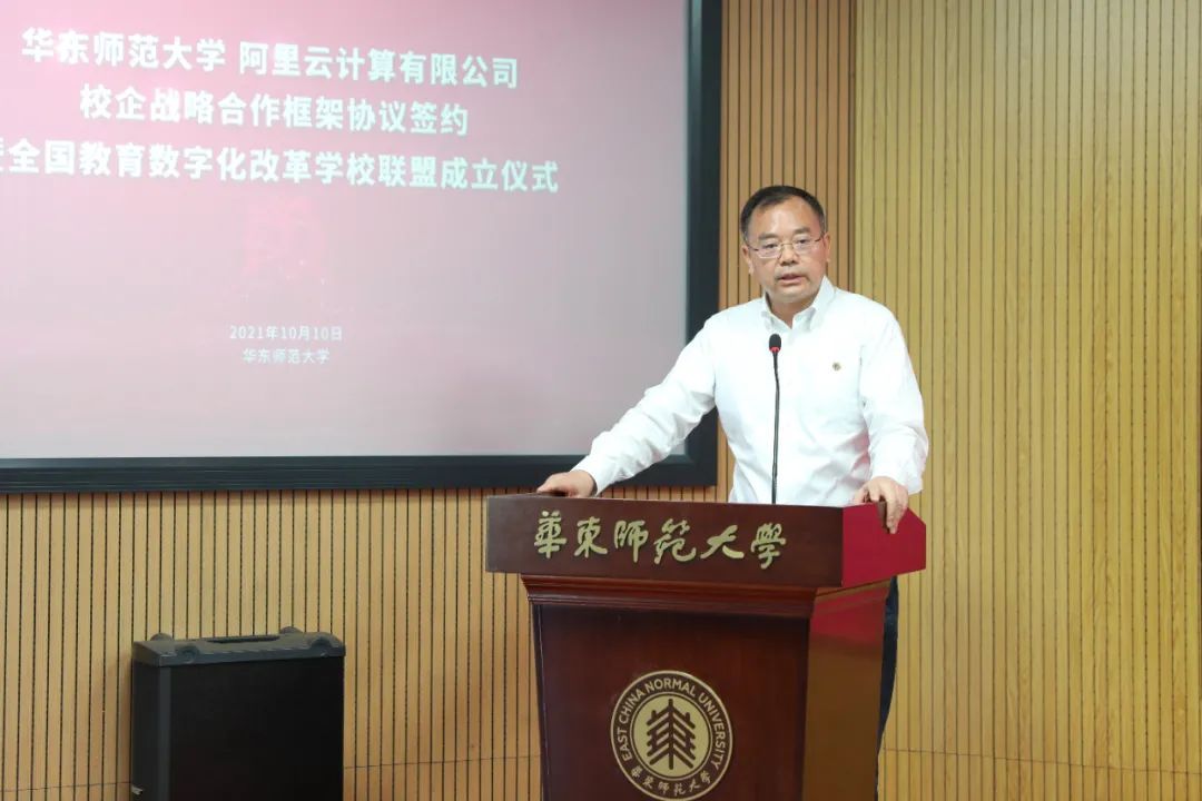 今天上午,在华东师范大学70周年校庆即将来临之际,华东师范大学-阿里云计算有限公司战略合作框架协议签约暨全国教育数字化改革学校联盟成立仪式在华东师大普陀校区举行,标志着一线教育主体与数字原生科技企业开启合作的新篇章,共同打造教育数字化的新格局。