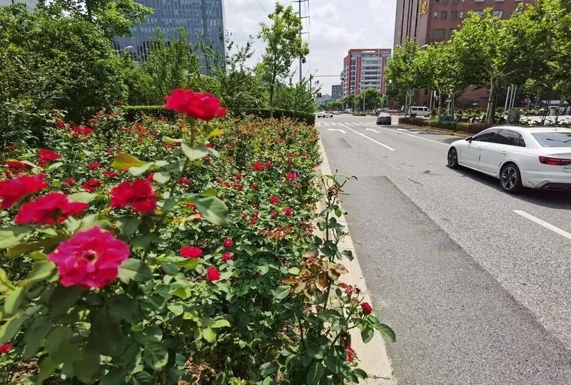 泸定路(金沙江路至云岭东路)隔离带里的月季