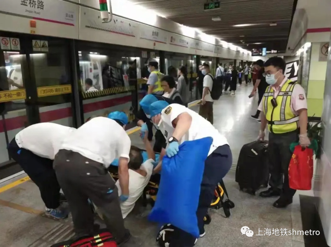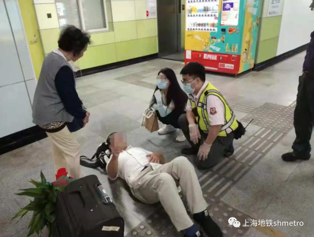 10月8日下午,6号线金桥路站务员像往常一样在等待着列车驶入站台,监护站台上下客情况。突然从到站的车辆内有位中年男乘客被人扶着艰难地步出车门,随后直挺挺地倒在了地上,站务员顾炜宏见状立即过去查看情况并用对讲机向车站值班员和值班站长汇报情况。