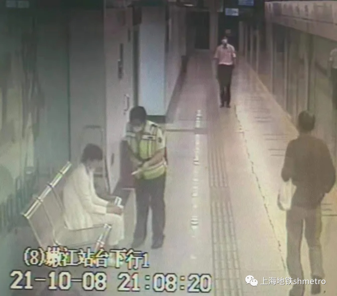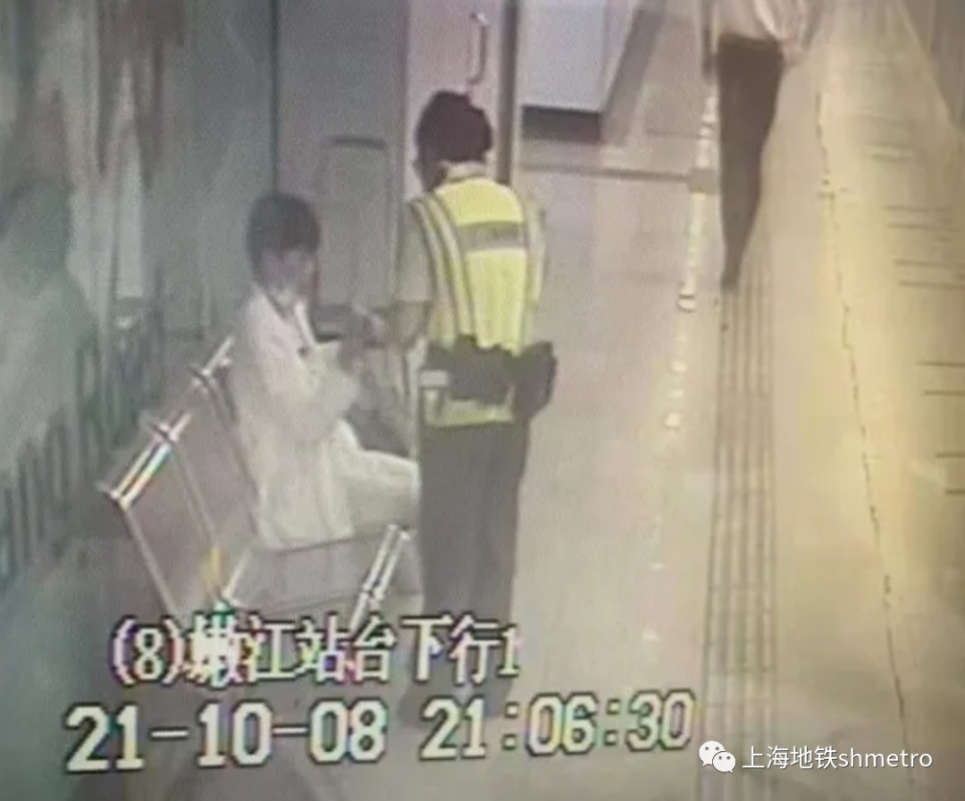 10月8日21时左右,8号线嫩江路站务员朱俊杰在接发车过程中发现有一位女乘客从车上下来后脸色苍白,出现站立不稳的情况。朱俊杰立即将女乘客引导到候车椅上休息,并立即用对讲机通知值班站长:“站长,站台有乘客低血糖,身体不适,需要帮助!”值班站长张缨接报后,揣着自己所带的牛奶与饼干迅速奔赴现场。